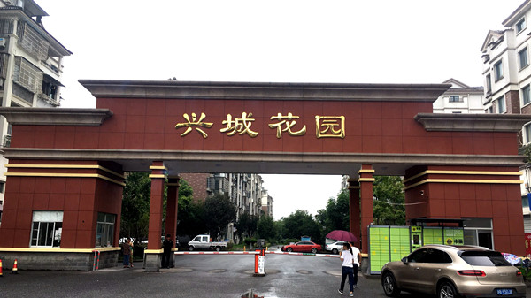 興城花園小區(qū)于2008年建造至今,已然過去10個(gè)年頭,掛著“興城花園”四個(gè)大字的門頭,經(jīng)歷多年的風(fēng)吹雨打、歲月洗刷早已面目全非,少了偏旁的“城”字,吊頂上的墨綠青苔,掉落的粉刷層讓整個(gè)門頭少了些生氣。